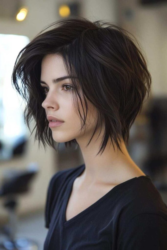 Want a bit of an edge? The choppy graduated bob is your answer. The ends are cut unevenly. This creates a more undone, edgy vibe. It adds a lot of movement. It’s less structured than other bobs. This style is perfect for a bolder look. To embrace the choppiness, use a matte wax or paste. Work it through your ends. It defines the pieces. It gives that cool, messy-chic finish.