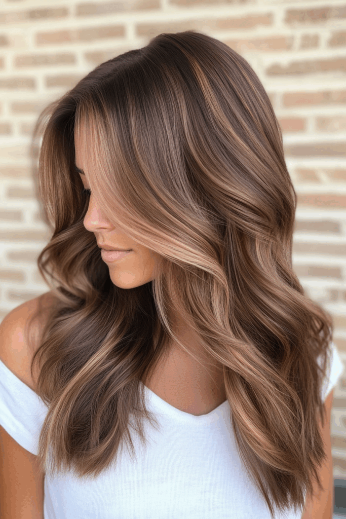 Looking for something modern and cool? This ashy mocha balayage is perfect. It features a cool-toned brown base with smoky, ashy mocha highlights. It’s understated yet super stylish. This shade is ideal for cooler skin tones. I often tell clients to use a purple shampoo occasionally to keep any brassiness at bay.