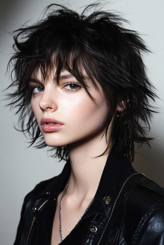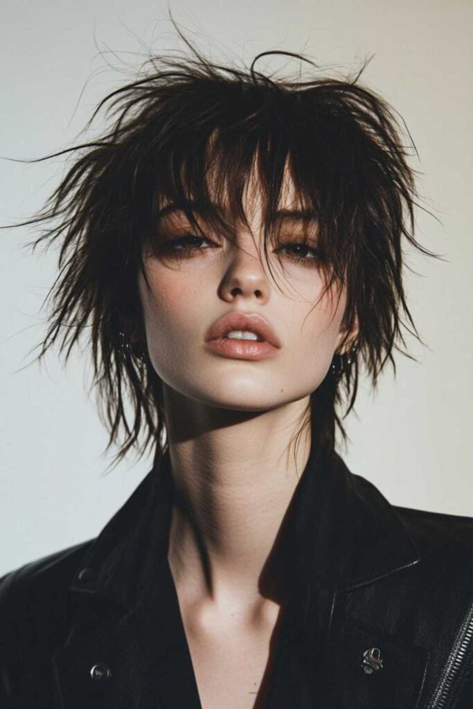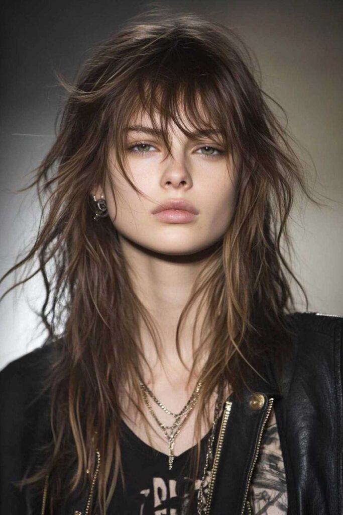 This style adds mystery and drama. Choppy layers frame your face beautifully. They create amazing texture. It softens features. But it still keeps an edgy vibe. Style the fringe to fall perfectly. Add texture to those choppy layers.