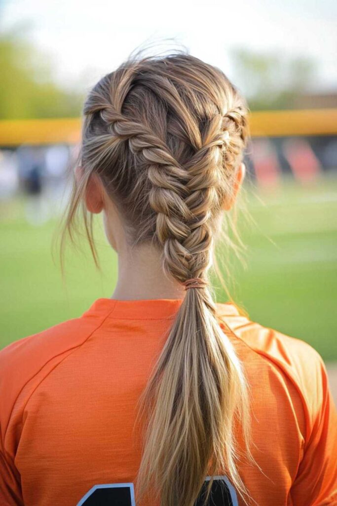 This style is both elegant and practical. A French braid crown wraps around your head. It keeps all your hair away from your face. It looks so pretty too. Secure the ends of the braid well. Use bobby pins for a firm hold. This is a winner for any player.