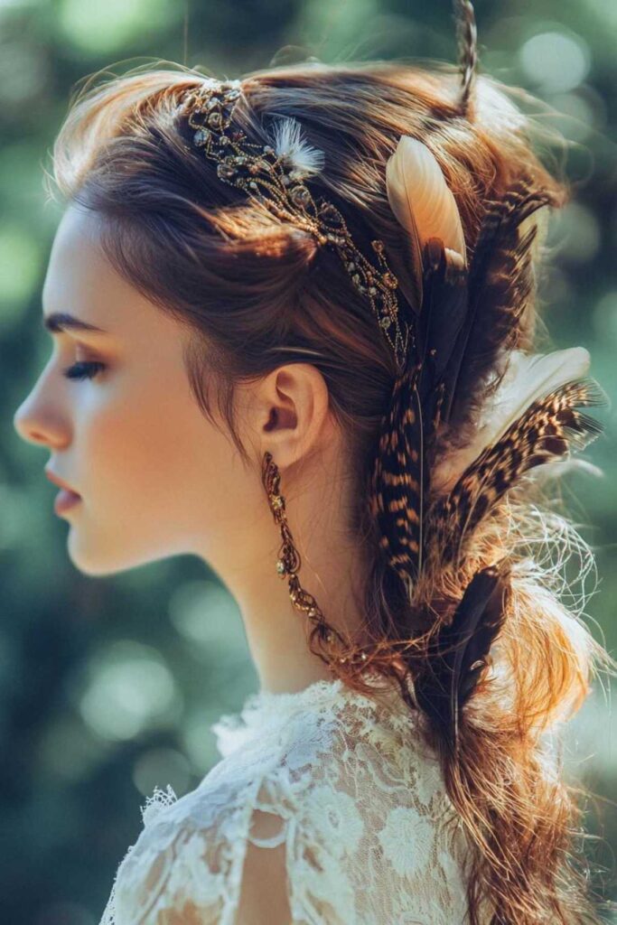 Feathers bring a whimsical touch. They feel free-spirited and natural. These are wonderful for beachy styles. Or embrace a full bohemian look. They add movement and lightness. Secure them well. They add a unique, airy charm.