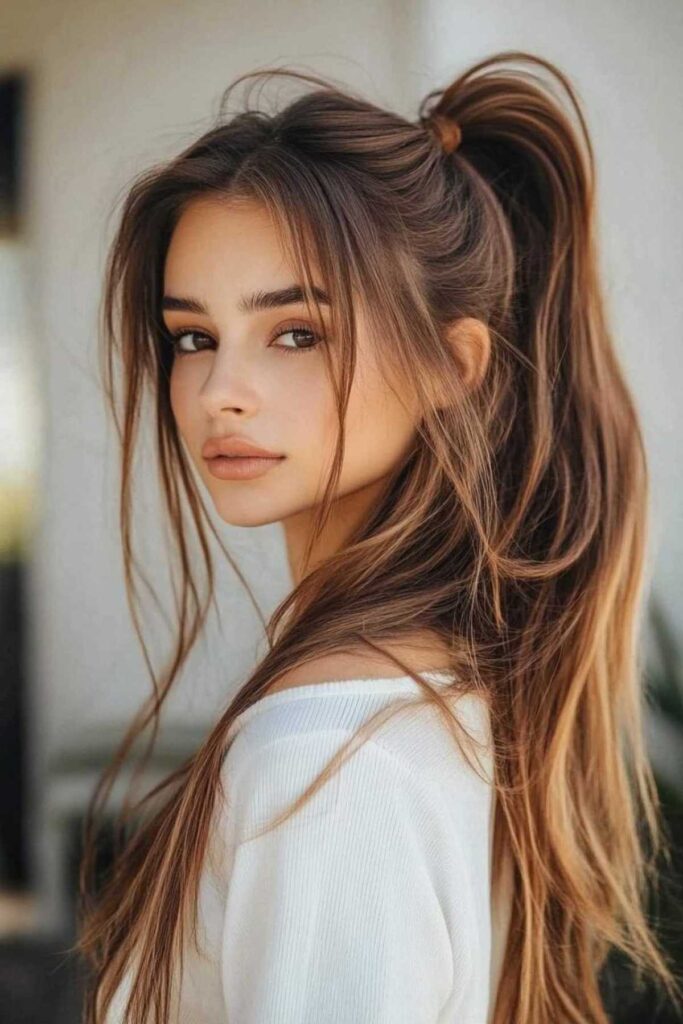 1. The Effortless High Ponytail with Natural Face-Framing