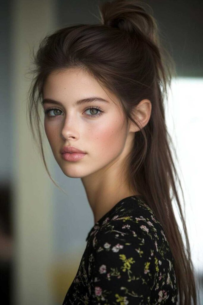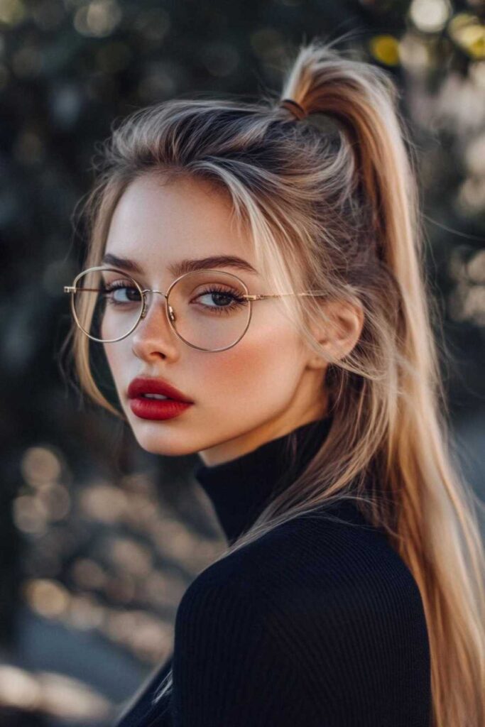 A deep side part adds instant classic elegance to any hairstyle, and a high ponytail is no exception. When you combine this with face-framing pieces, you get a look that’s both polished and incredibly flattering. The framing pieces complement the strong line of the side part beautifully. To keep your part looking defined all day, a little bit of hairspray or a strong-hold gel can really help secure it.