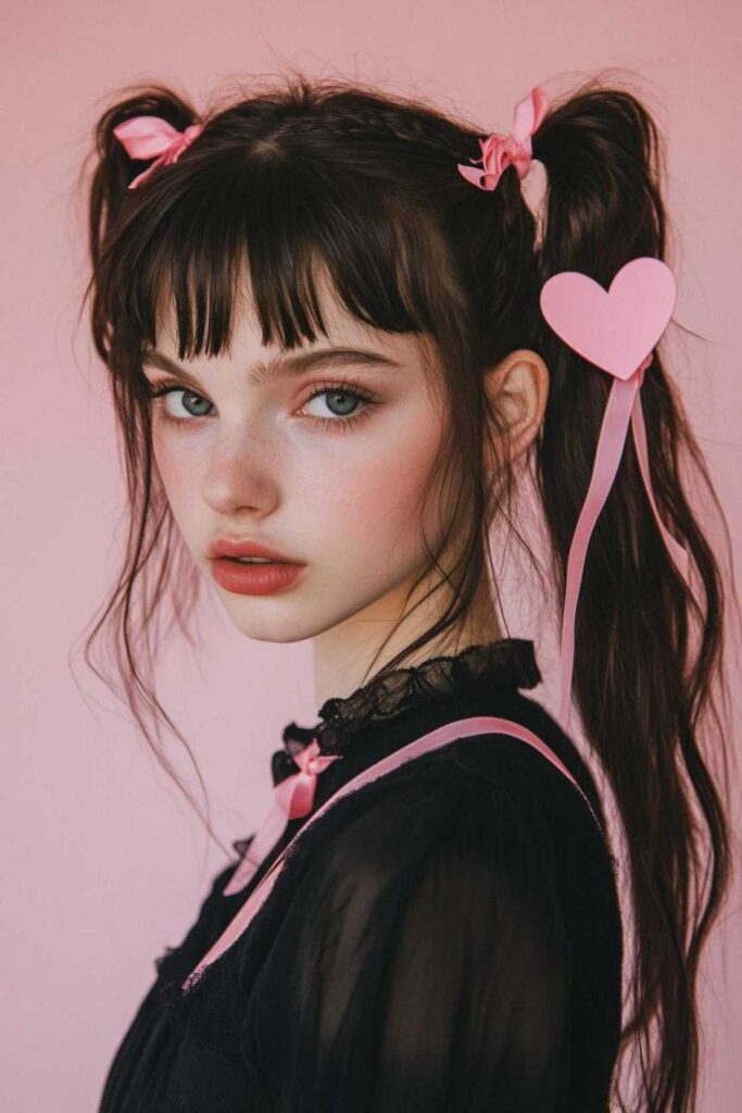 Ready to make a statement? This style is for you. You create multiple small heart-shaped buns. They are scattered across your head. It’s unique and eye-catching. This is for those who want a bold look. To get the best symmetry, space your buns evenly. You can use hairspray to keep them smooth. It looks amazing with a bit of sparkle too.