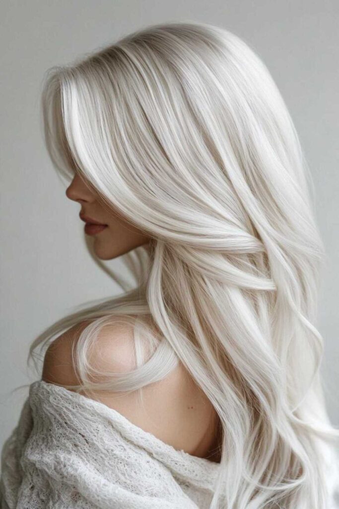 This is a very light blonde. It has creamy, almost white undertones. Creamy Platinum Blonde avoids harsh yellow tones. It’s bold yet sophisticated. Regular deep conditioning is crucial. Protein masks help maintain its health.