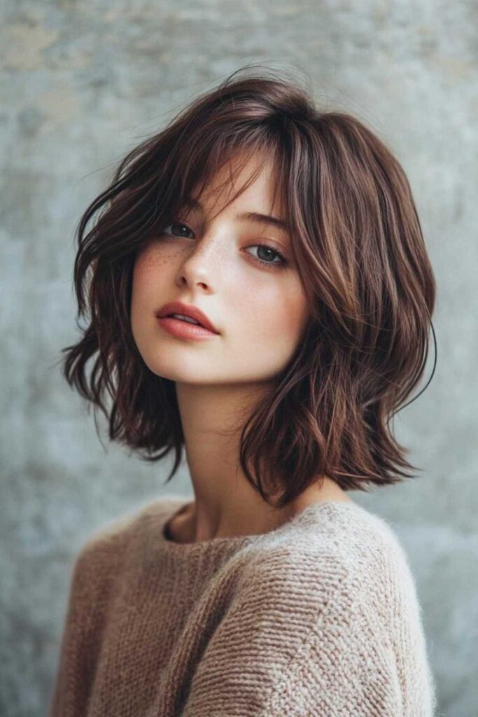 Get ready for some cool vibes with the modern shag! This cut is edgy but totally wearable. It gives you amazing volume. The layers frame your face beautifully. Bangs add an extra touch of style. Curtain bangs or wispy ones both work great. To style the bangs, a quick blast with a hairdryer and a round brush works wonders. Just lift them at the root. For the layers, a texturizing paste helps define them. You can really play with this cut. It’s a bit rebellious and a lot of fun.