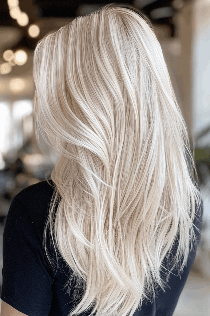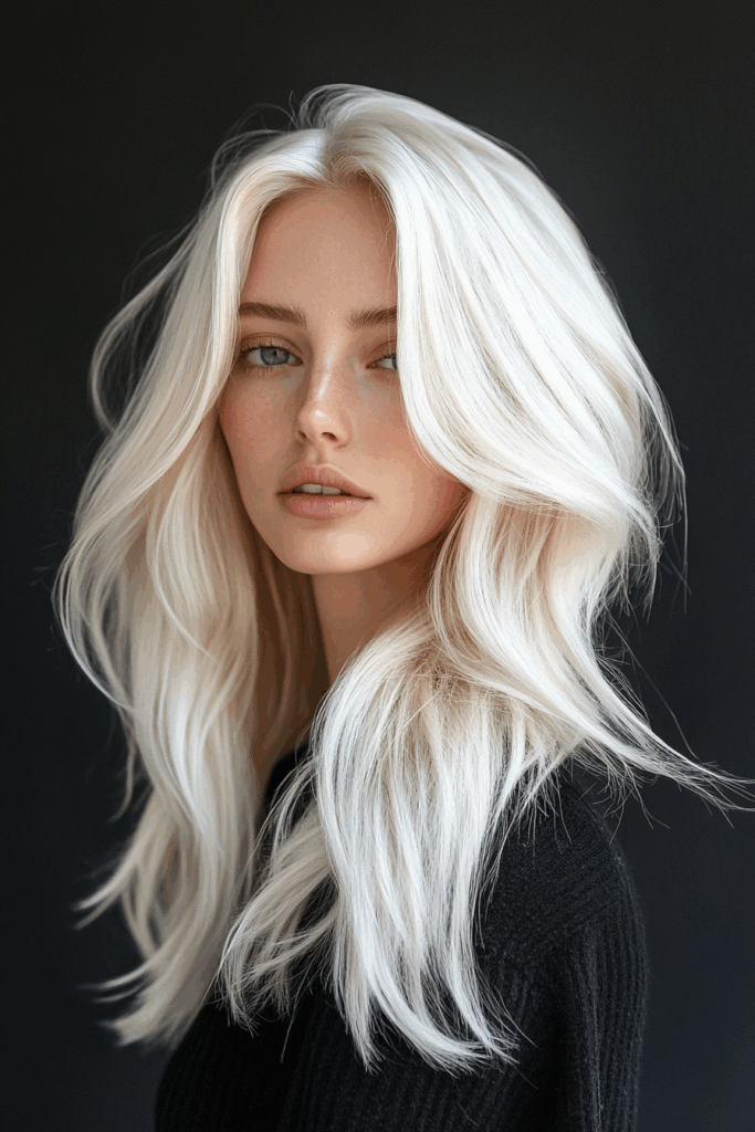 This is a very pale, creamy blonde. It has subtle warmth. It’s almost white but soft. It’s a luxurious, modern take on platinum. It’s for those who love light blonde but avoid ashiness. It can be very chic. This requires regular toning and deep conditioning to stay bright and healthy.