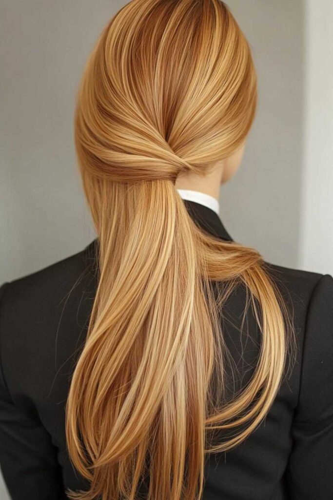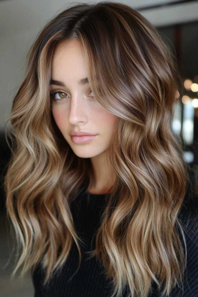 This is the ultimate natural look. It perfectly mimics sun-kissed hair. It’s timeless and easy to style. You can wear it straight or wavy. To refresh between salon visits, try a gloss. It adds shine and vibrancy to the ends.