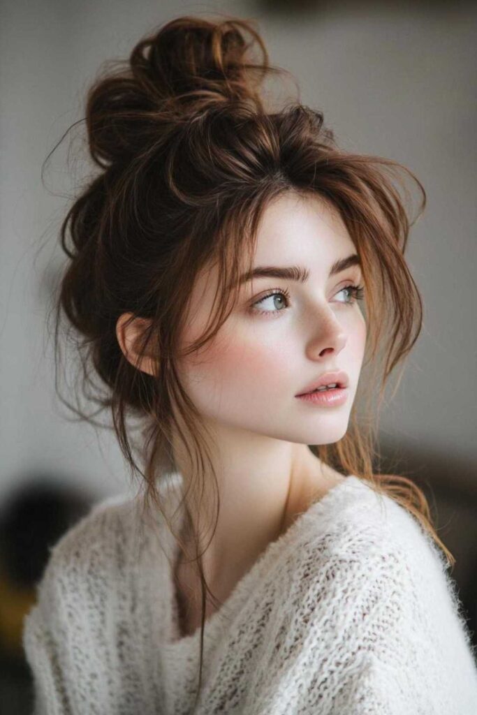This look is soft and creamy. Toasted marshmallow tones are gently lighter. They offer a soft brightening effect. It’s a sweet and subtle change. For a lived-in look, try messy buns. They enhance the natural, effortless vibe.