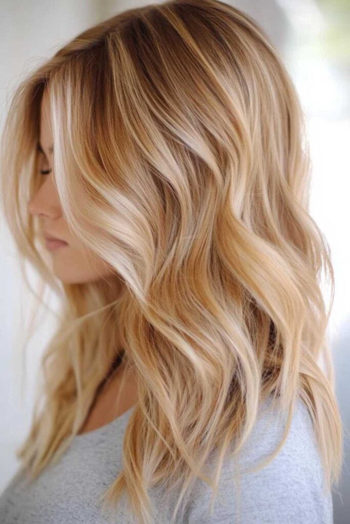 Imagine honey dripping down your hair. That’s the beauty of a golden honey melt. These bright, honey-like highlights add radiance. They give you that perfect sun-kissed glow. To really make these blonde tones pop, try a subtle wave. It catches the light beautifully. Use a texturizing spray for that effortless look.