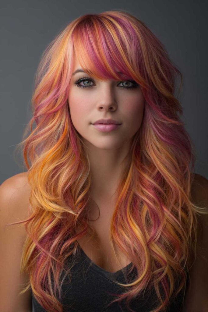 Imagine patches that blend like a sunset – warm oranges, pinks, and yellows. This creates such a warm and inviting look. I find it absolutely stunning and full of life. For an extra boost of shine, use a lightweight hair oil. It enhances the colors and makes your hair look super healthy and radiant.