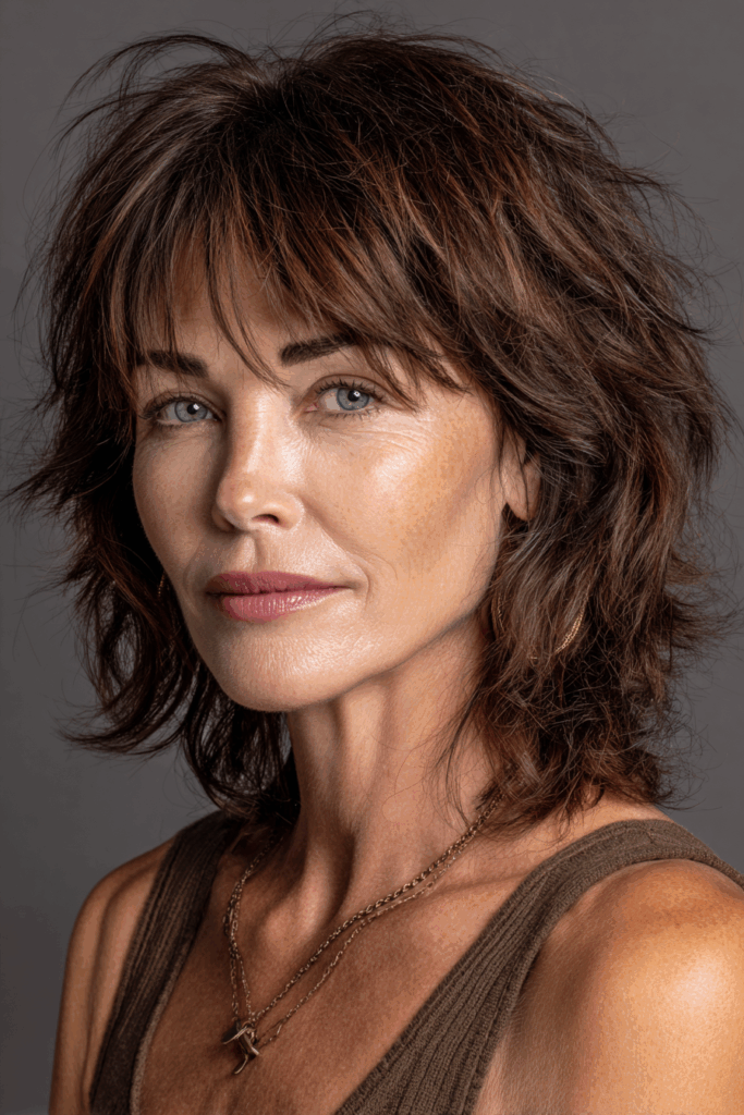 This haircut is a dream for women over 50. It naturally adds volume, which can be a game-changer as hair tends to get finer with age. The layers are expertly cut to frame the face beautifully. This softens features and draws attention to your eyes. Maintenance is also a huge plus. Shags are renowned for their low-fuss styling. You can wake up and go, looking put-together. It’s all about embracing effortless beauty. This style truly celebrates your natural texture and shape.