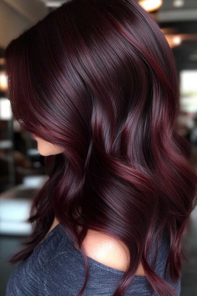 This shade is incredibly sultry and mysterious. It starts with a very dark, almost black base. Deep cherry undertones add a hint of intrigue. It’s a subtle yet captivating color. This look is perfect for those with naturally dark hair. They want a hint of something special. It’s a sophisticated way to add dimension. It gives off a mysterious vibe without being obvious.