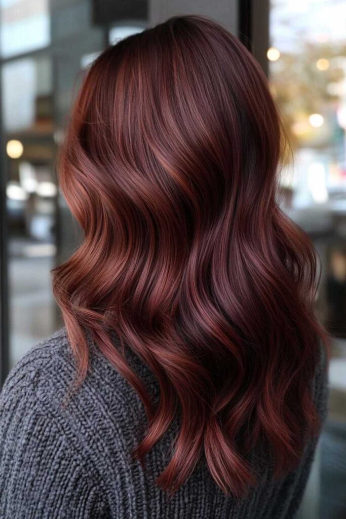 Balayage is a technique that’s here to stay. When applied to chocolate cherry, it’s divine. This creates a seamless, sun-kissed effect. The color melts beautifully into your natural shade. It looks like you just returned from a tropical vacation. The appeal here is its low-maintenance nature. You don’t need frequent touch-ups. To really show off the blend, embrace your natural texture. Let your hair’s waves and movement highlight the color.