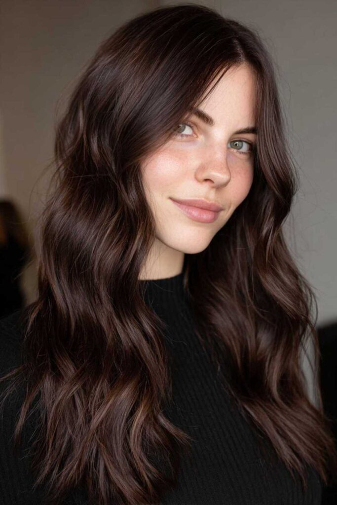 Espresso brown is a deep, rich, and luxurious shade of dark brown. It’s like the darkest roast coffee, with cool undertones that add sophistication. I find this color incredibly classic and universally flattering. It gives a healthy, glossy sheen to the hair. It’s a fantastic choice for a subtle yet impactful winter hair color. Regular trims keep the ends healthy. For more brown shades, see our fall brown hair colors.