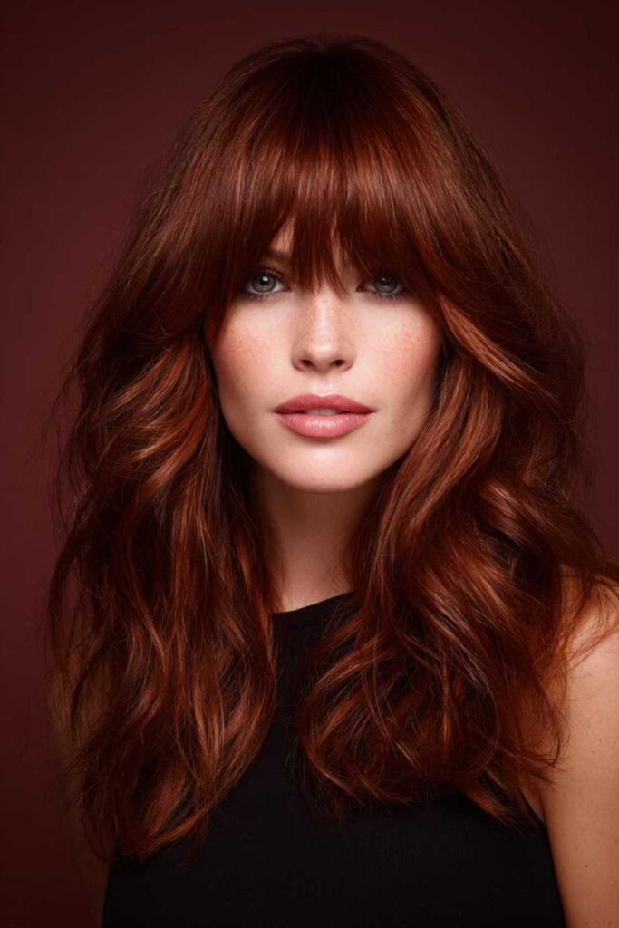 Deep burgundy is a luxurious and captivating hair color. It’s a rich, dark red with cool, purple undertones. I find this shade incredibly elegant and mysterious. It’s perfect for adding a touch of drama to your winter look. It complements fair to medium skin tones beautifully. To maintain this color, use sulfate-free products. This helps prevent fading and keeps it looking plush. You might also like our ideas on plum hair looks.