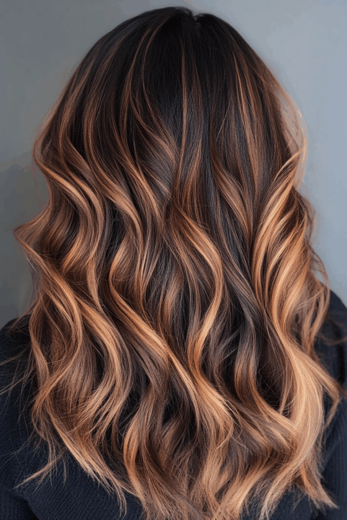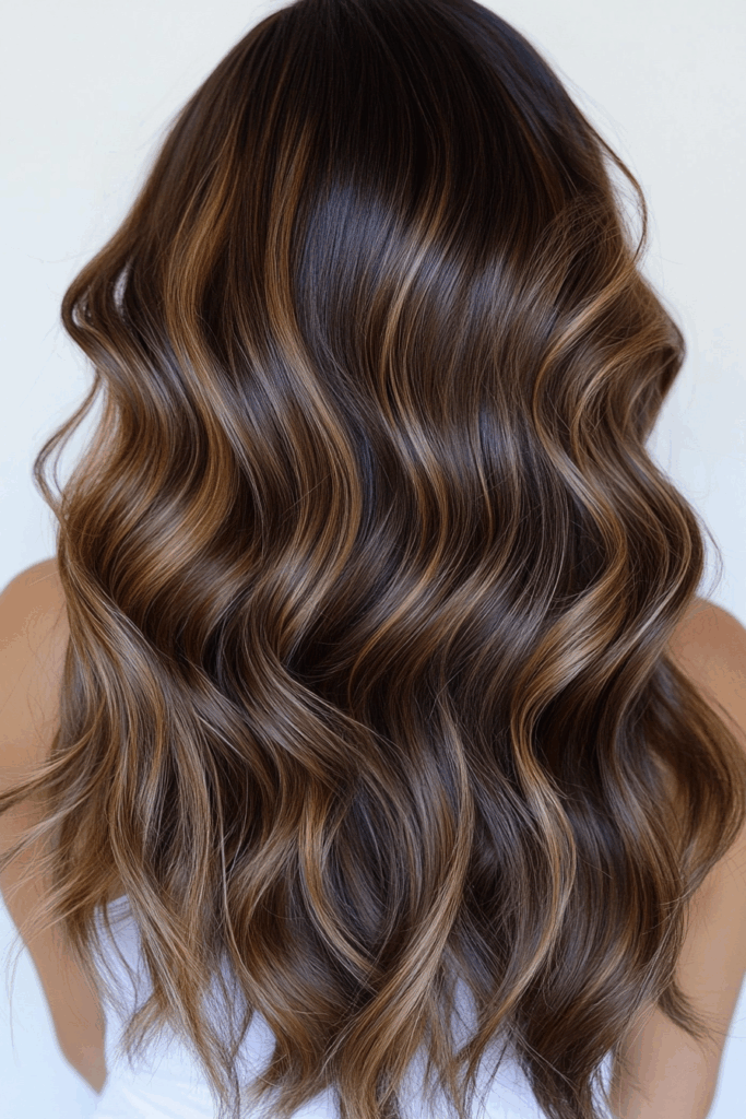 Start with a very dark, espresso brown. Almost black is great. Then, add soft, creamy caramel pieces. They are painted through gently. This creates a beautiful, subtle contrast. It’s a sophisticated take on highlights.