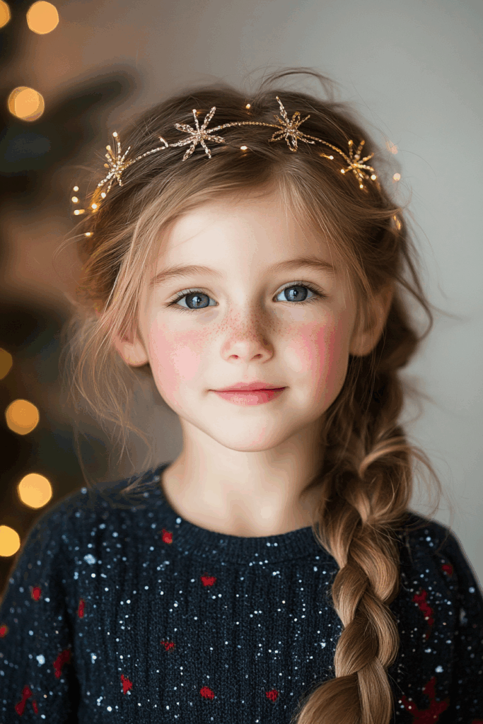A crown braid is always elegant. You can adapt it to look like delicate snowflakes. This keeps hair beautifully secured and adds a touch of winter magic.