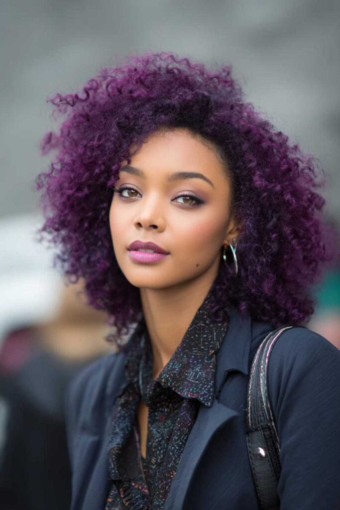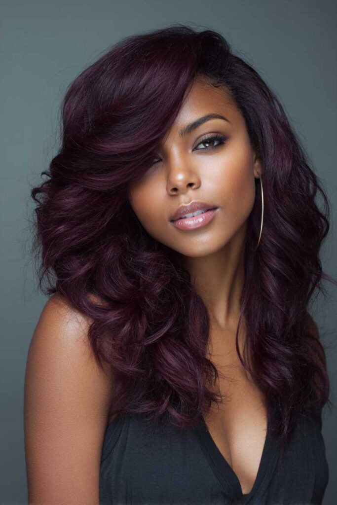 Plum perfection makes a bold, unique statement. It’s ideal for those wanting an edgy yet elegant vibe. This rich purple hue truly stands out from the crowd. To keep it vibrant, use color-depositing conditioners. It’s a fun way to express your personality.
