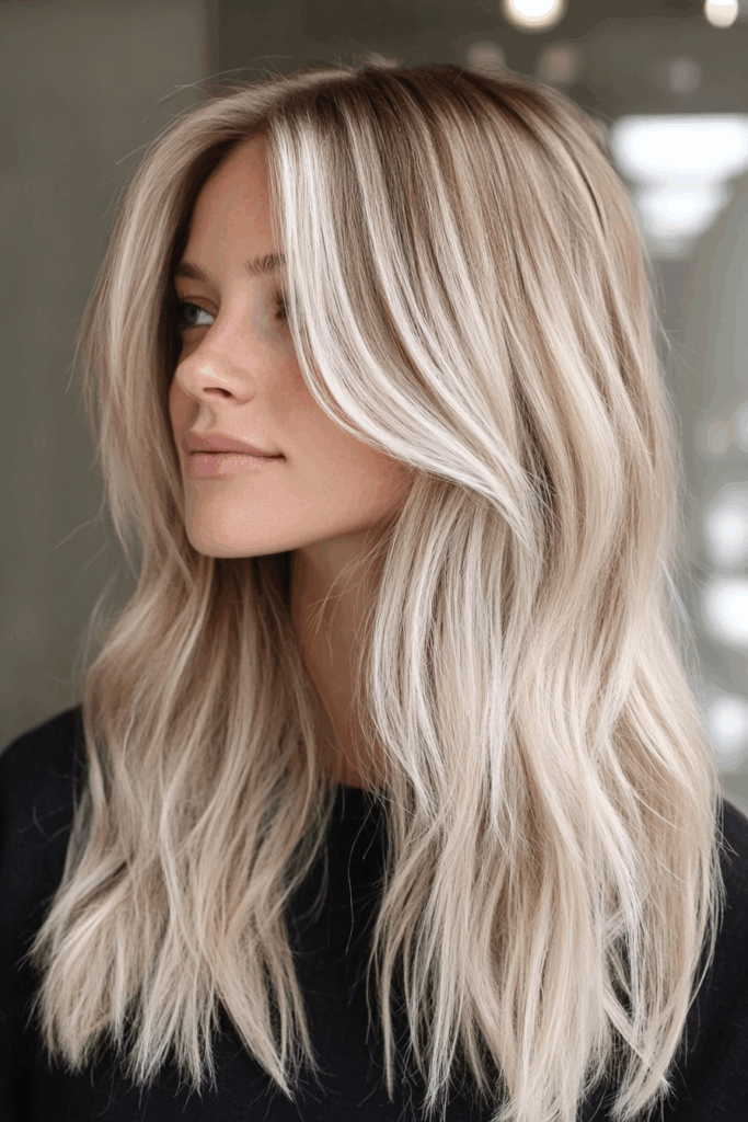 This shade sounds delicious, doesn’t it? Toasted coconut blonde is a beautiful blend of creamy blonde and subtle warm brown tones. It creates a dimensional and incredibly natural look. I love how multi-tonal it is. It suits many complexions and feels very modern. For this technique, balayage is absolutely ideal. It allows for that beautiful, blended effect that makes the color look so natural and lived-in.
