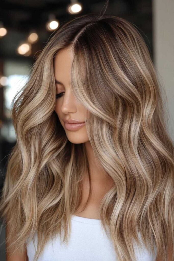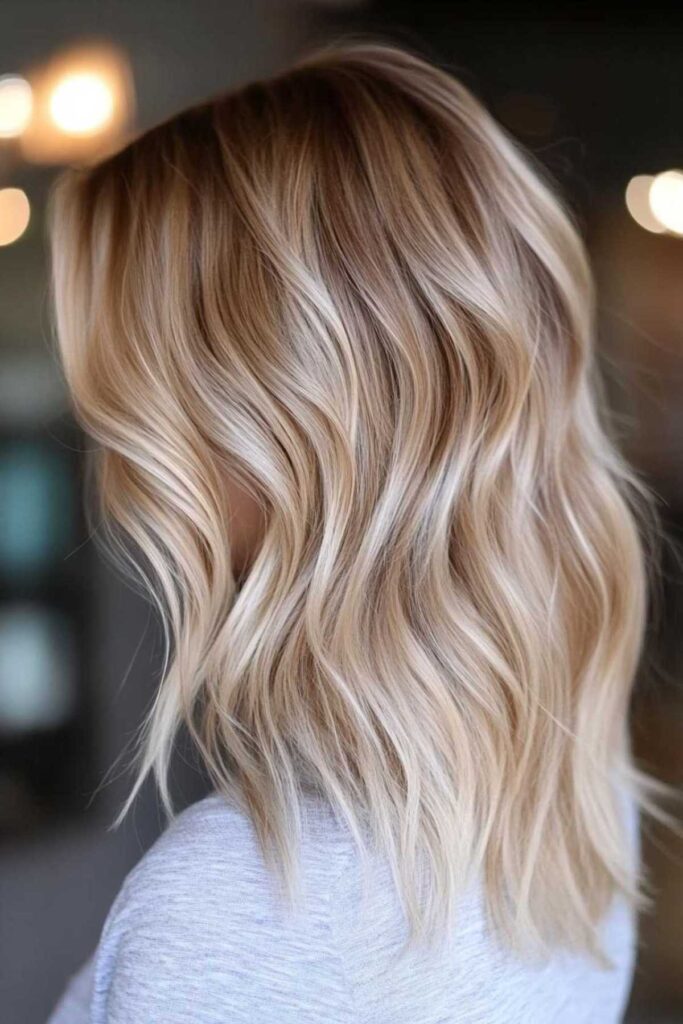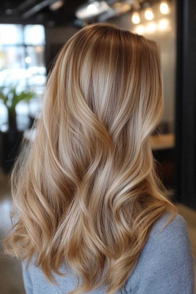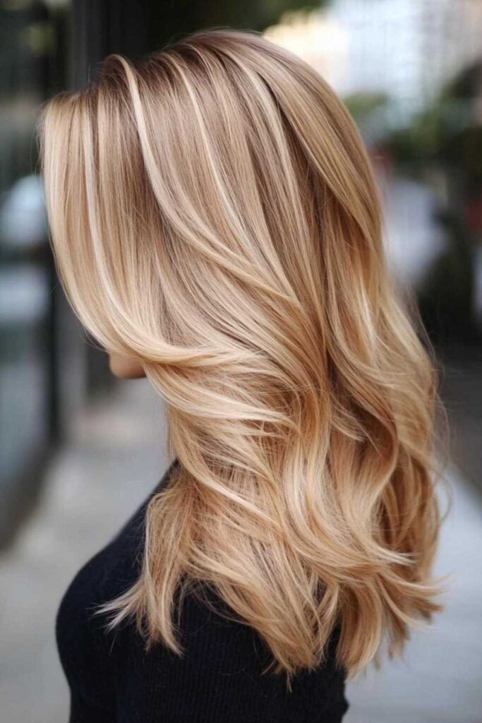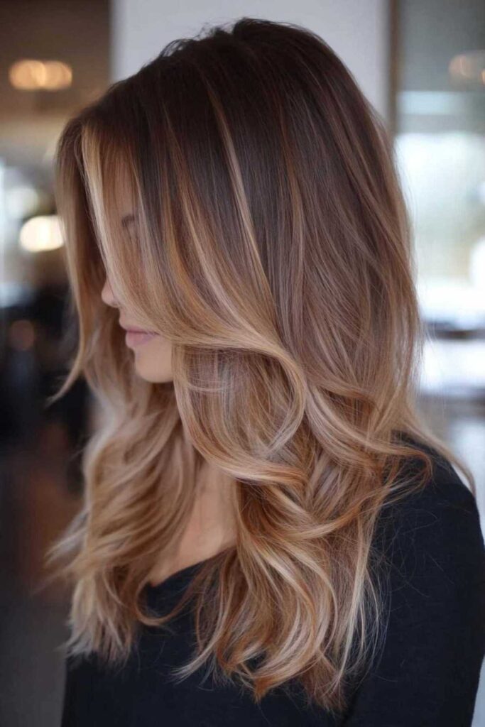 This is a variation of the balayage technique. It creates a beautiful blend of blonde and caramel. It gives a gorgeous sun-kissed effect. It’s like you’ve spent all summer by the beach. This style is also wonderfully low-maintenance. It grows out so gracefully. You won’t have harsh lines of regrowth. For styling, soft waves really enhance the blended caramel blonde tones. It looks effortlessly chic.