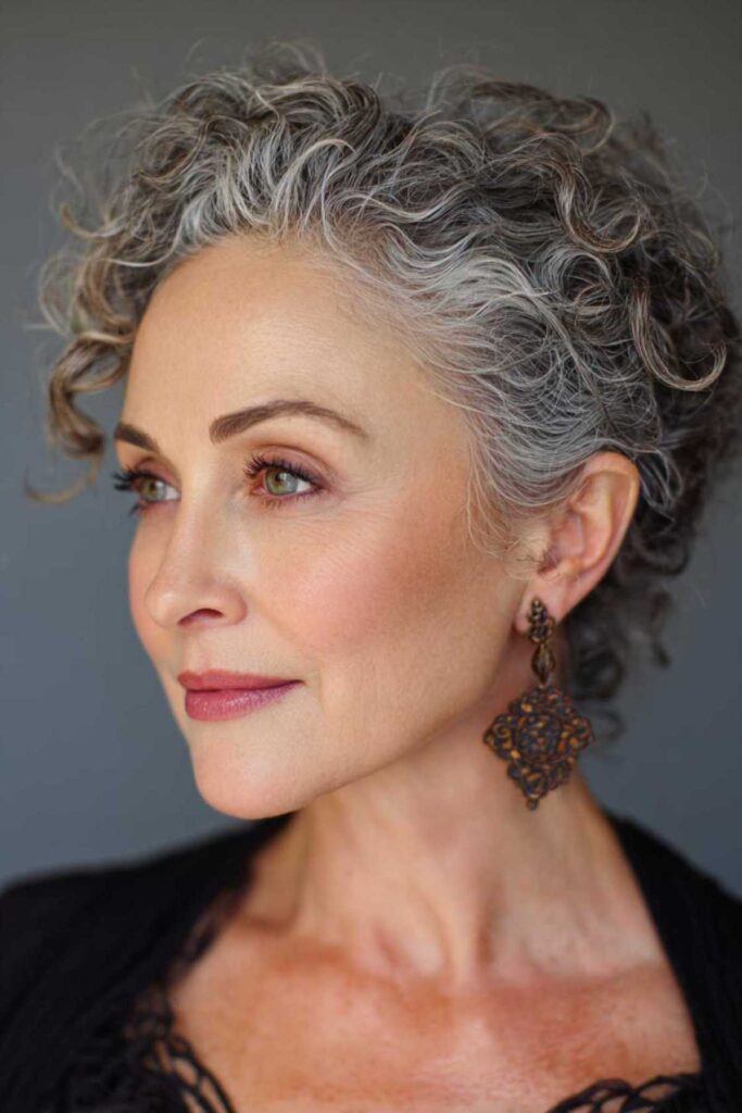 Sweeping your beautiful curls to one side adds instant glamour. It also provides a lovely way to showcase your earrings. For curls that last, start with a good volumizing mousse. It gives your hair the structure it needs. Your curls will hold their shape.