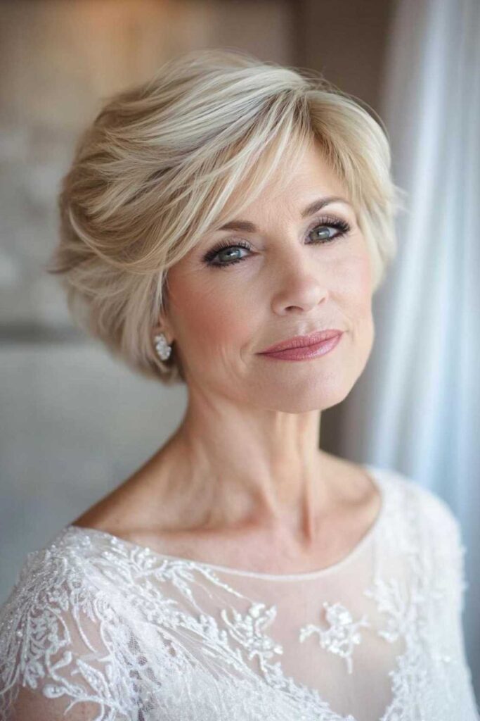 Mothers of the bride with shorter hair can also shine! Focus on styles that add volume and polish. A well-styled short cut can be incredibly elegant. Use a styling wax or pomade. This defines layers and adds shine. It gives your short hair beautiful shape. It’s a chic and polished option.