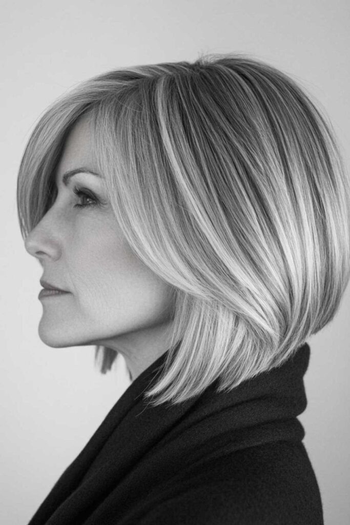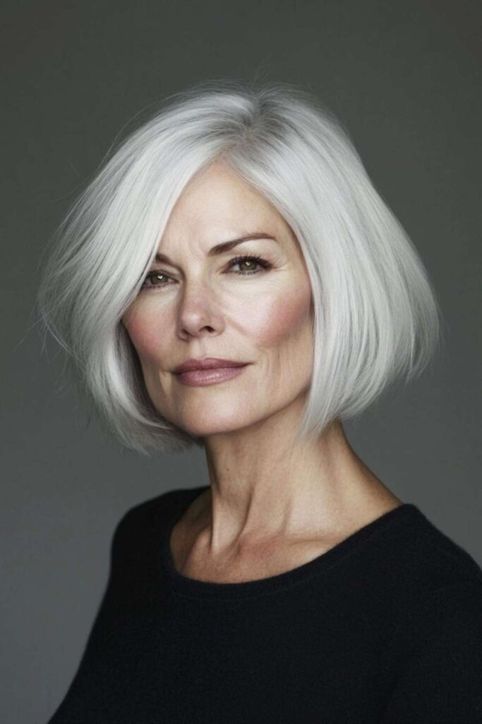A blunt cut bob has clean, sharp lines. It’s a timeless style. It creates a strong, confident look. This cut is perfect for women over 50. It makes a bold statement. To maintain the sharp edge, use a flat iron. Make sure the ends are perfectly straight. A little hairspray can help. It keeps everything in place. It’s classic and powerful. You’ll feel amazing.