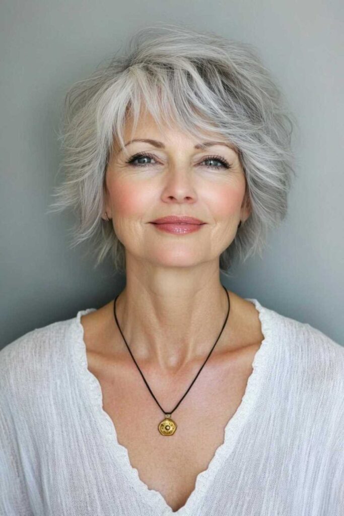 This is a timeless short cut. It really emphasizes fullness. Strategic layering creates impressive volume. It’s a flattering and easy option. Women over 50 will love this cut. It’s manageable and chic. For extra boost, try a volumizing powder. Sprinkle a little at the roots. Gently massage it in. This adds instant lift. It’s a simple trick. It makes a big difference.