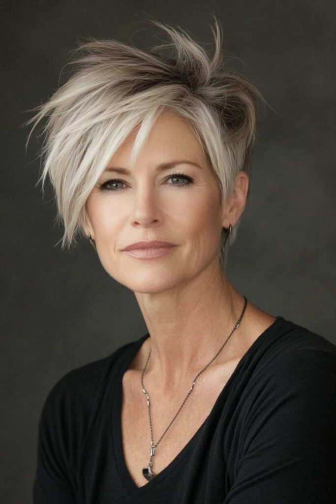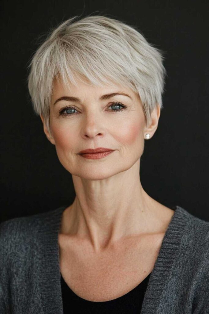 The pixie cut is a classic for a reason. It’s short, edgy, and undeniably chic. For women over 50, it’s a fantastic choice. It adds a touch of sophistication. Plus, styling is a breeze. You can finger-style it easily. Want more volume? Try a bit of texturizing spray. Work it through the roots. This gives your pixie a playful lift. It frames your face perfectly. It’s bold yet elegant. You’ll feel amazing!