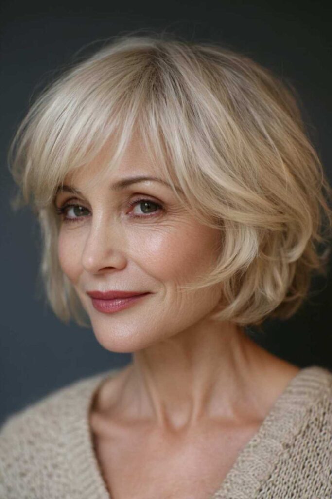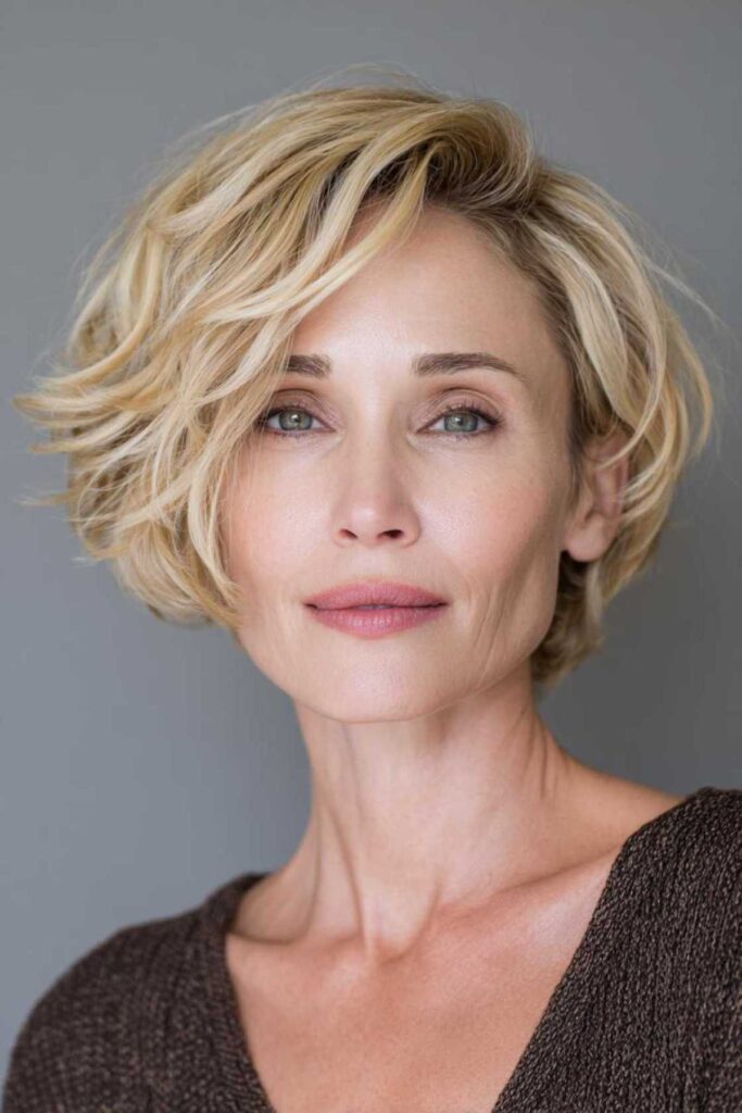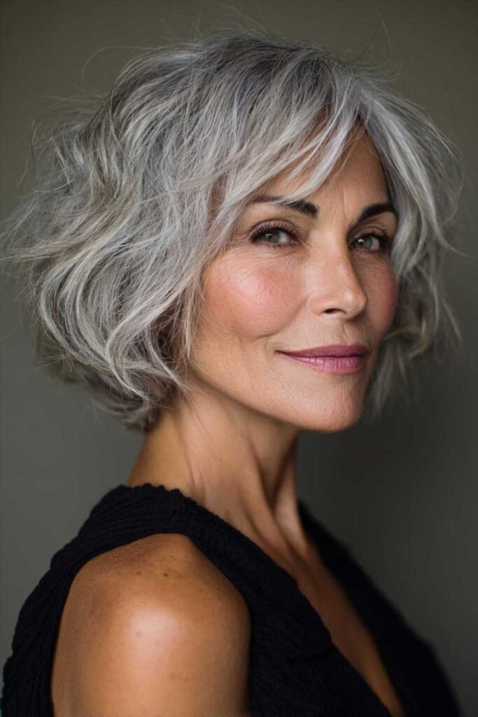 This style is pure sophistication. A textured crop is soft and chic. It’s easy to manage for daily wear. The deep side part adds instant drama. It also creates lovely volume at the crown. This look complements many face shapes. It’s very flattering. To create that deep part, use a comb’s tail. Simply guide your hair to one side. A little hairspray keeps it in place all day.