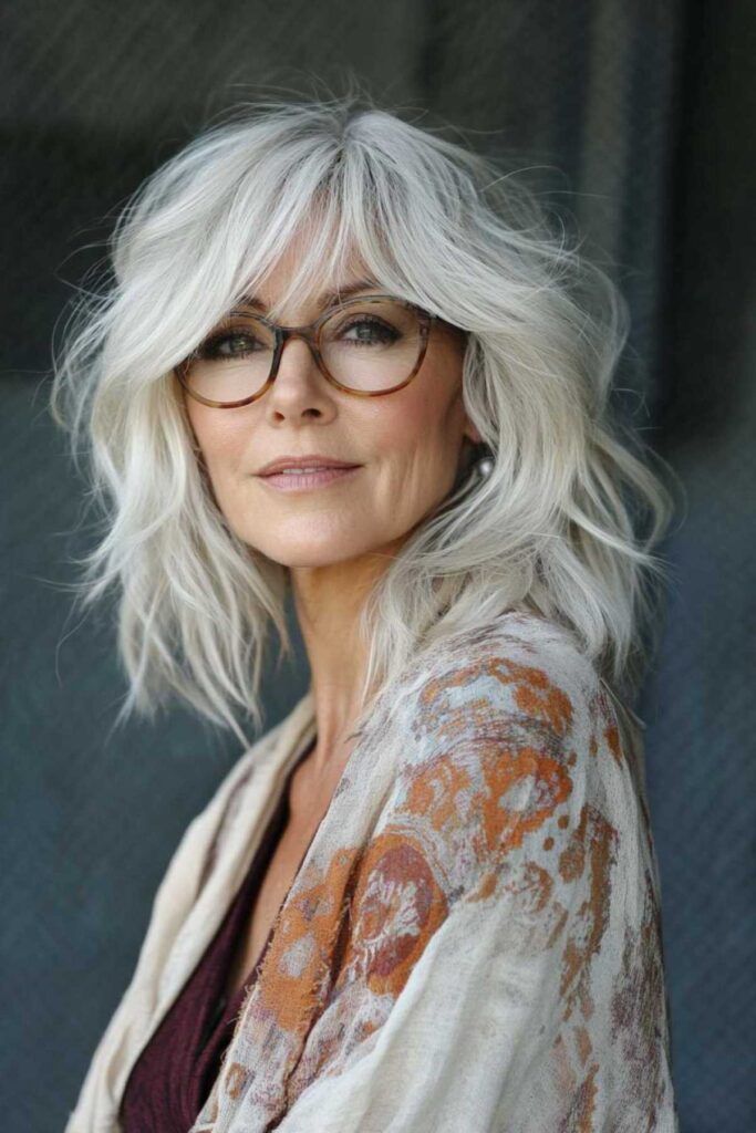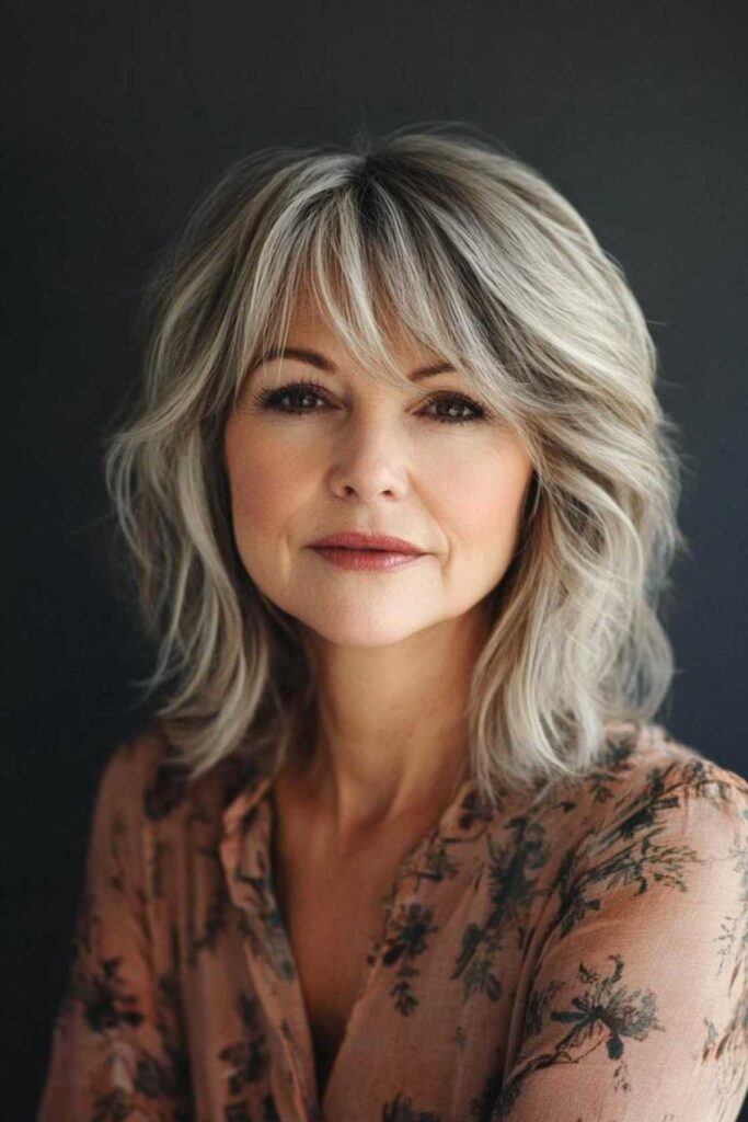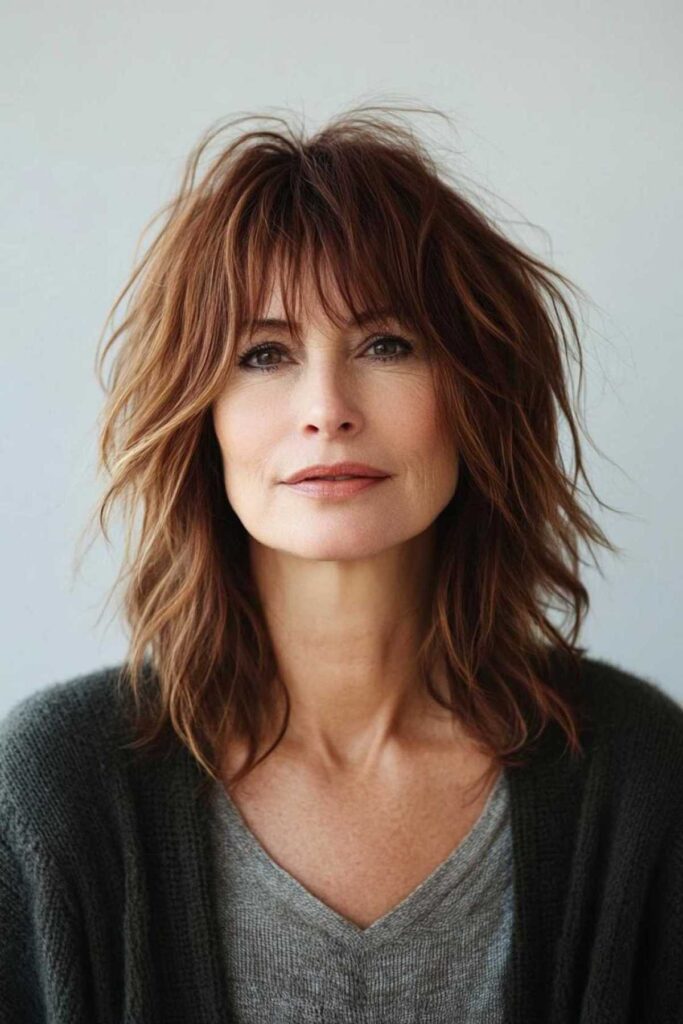Embrace your inner free spirit with the shaggy mid-length cut. This style is all about texture and effortless cool. Think soft, blended layers throughout. They create a beautiful, lived-in look. It’s perfect for women over 50 who want a style that’s easy to manage. The shaggy layers can wonderfully soften facial features. They add a touch of youthful softness. To maintain its relaxed vibe, a little sea salt spray works wonders. Just scrunch and go! It’s a cut that says you’re confident and carefree. I find it’s a great way to add character. For similar styles, see our guide on shag haircuts for women over 50.