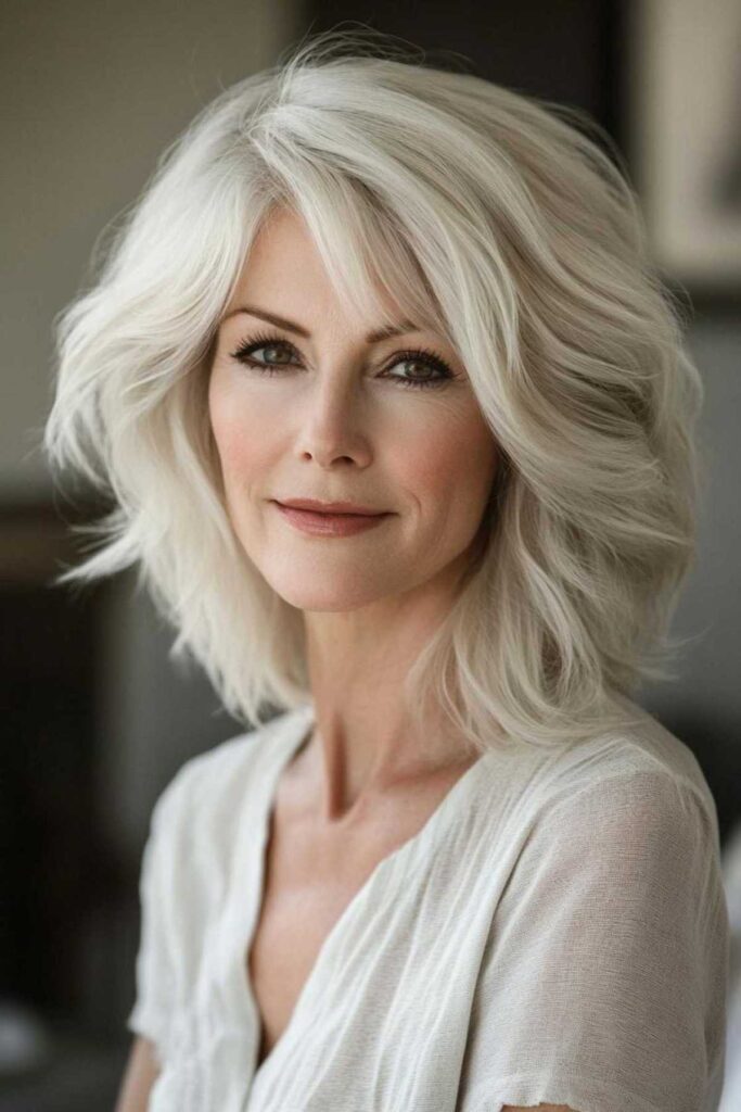 This cut hits right at the collarbone. It’s a fantastic length that’s neither too short nor too long. Adding layers here is key. They prevent the hair from looking heavy. Layers give it bounce and life. For women over 50, it’s a super versatile option. It frames the face nicely. To keep those layers looking fresh, regular trims are important. Aim for every 6-8 weeks. This ensures the shape stays crisp. You can wear it straight, wavy, or even tie it back. It’s a beautiful, balanced style. I think it’s a true crowd-pleaser. For more on layered styles, see layered medium haircuts for women 50.