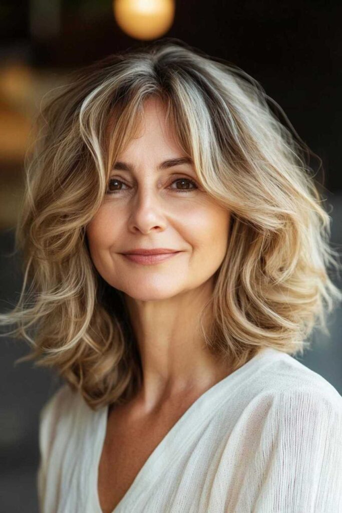 There’s something undeniably romantic about wavy mid-length hair. This cut embraces natural texture. It’s soft, touchable, and incredibly feminine. The waves add a lovely dimension. They complement almost any face shape. For women over 50, it offers a gentle, approachable look. It feels soft and graceful. To really make those waves pop, try a curl-defining cream. Apply it to damp hair and let it air dry. Or use a diffuser for extra volume. It’s a style that feels effortless and beautiful. I love its natural charm. For more on embracing waves, see wavy hairstyles.