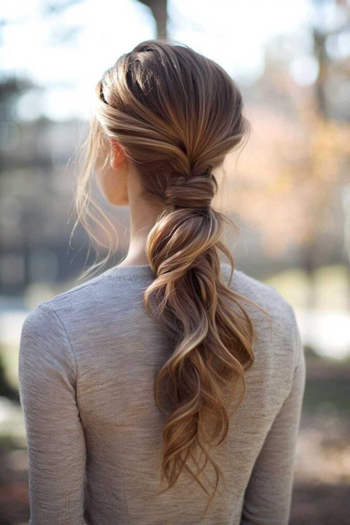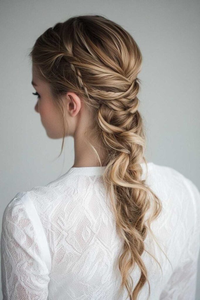 Let’s give the ponytail a romantic twist. Incorporate a braid, but keep it soft. The overall texture should feel touchable. Avoid tight, rigid braids. A loose French braid or Dutch braid works well. You can also braid just a section. Then incorporate it into your ponytail. A flirty detail could be loose strands. Let them escape from the braid itself. This adds a touch of undone charm. This style is super versatile. It works for day or night. To make the braid look less rigid, gently pull it apart. Use your fingers to loosen the loops. This creates a fuller, softer braid.